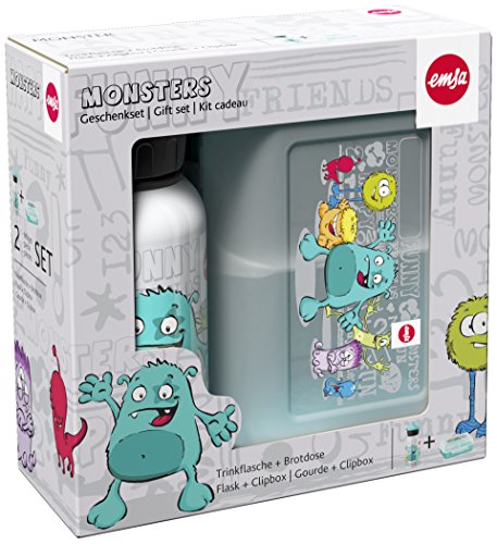 Buy Emsa 516173 Children's Drinks Bottle and Sandwich Box Variabolo 16 x 11 x 7 CM, Monster