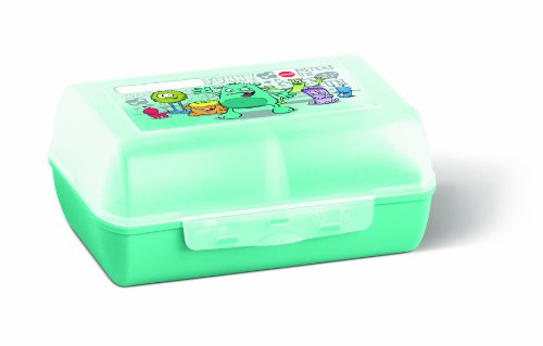 Variabolo Monster Clip-Box with partition and design 16 x 11 x 7 cm , Easy to separate in two parts through the partition , Infinitely adjustable , Incorporated design - 100% dishwasher safe , Saving space – The containers can be stacked in each other , Color: monster , Dishwasher safe , Material: plastic Size: Length: 16 cm Width: 11.2 cm Height: 7 cm Manufacturer item number: 514482 , Pack contains:1 Emsa Variabolo Clipbox Monster Partition, Lunchbox, Food Storage Container, 514482