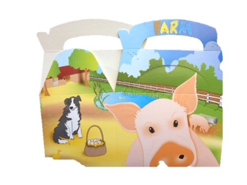 100 - Farmyard Children Lunch Boxes • Length 6" Width 4" Height 8" approx, 16cm x 10cm x 20cm, 160mm x 100mm x 200mm • Lunch boxes with handle • Farmyard patterned lunch boxes, Flat pack boxes • Also available in Jungle, Wildlife and Circus